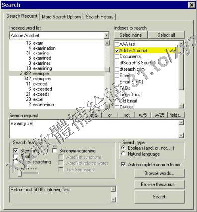 索引網站。另外, dtSearch Desktop 還具有獨特的,能搜索未"索引"文件的功能.