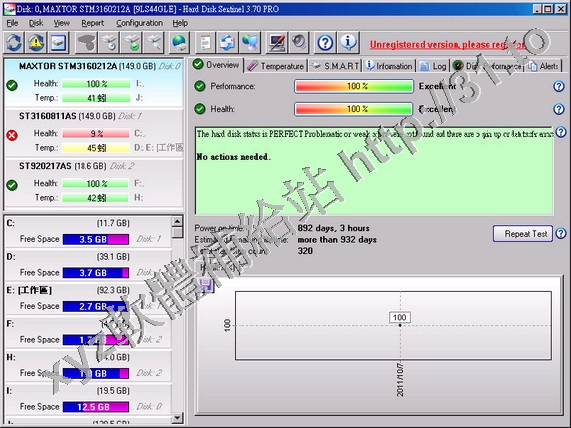 Hard Disk Sentinel Pro v3.70 英文正式版(硬碟監控軟體)