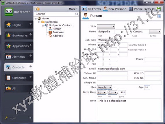 RoboForm allows you to define your personal profile