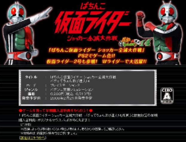 蒙面甲蟲超人 Pachinko Kamen Rider Shocker Zenmetsu Daisakusen JPN PS2(日版)
