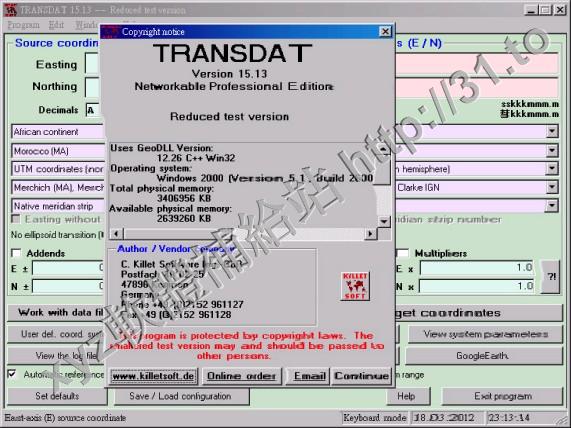 Killetsoft TRANSDAT v15.13 英文正式版(地理坐標轉換軟體)